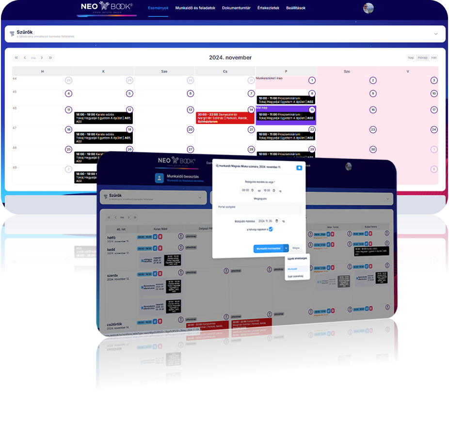 NeoBook© is a cloud-based management system that helps institutions efficiently manage their events, work schedules, and administration. Whether it's a sports facility, cultural center, or city organization, the system ensures transparent operation, time and cost efficiency. Mobile-friendly, secure, and easy to use – choose modern management!
